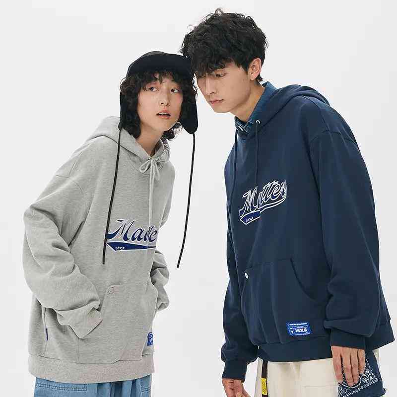 江南先生刺绣情侣连帽卫衣