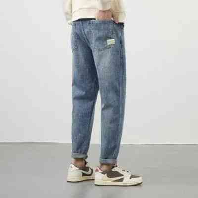 采用99%新疆棉,面料加入了莱卡纤维,使牛仔裤富有弹力且柔软舒适。上身会比较修身一点,体型偏瘦的男士穿着效果绝佳。