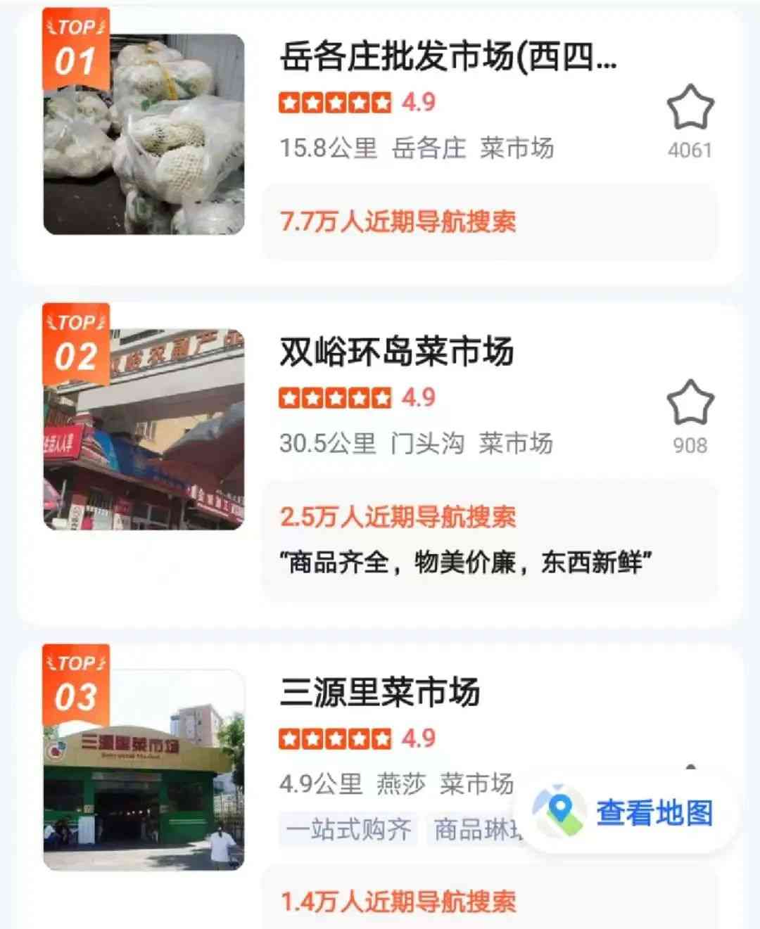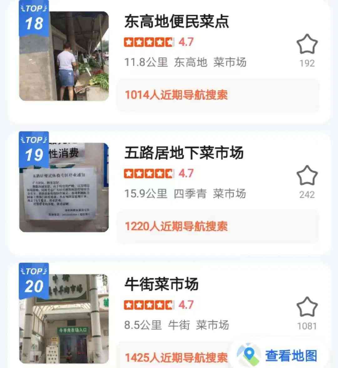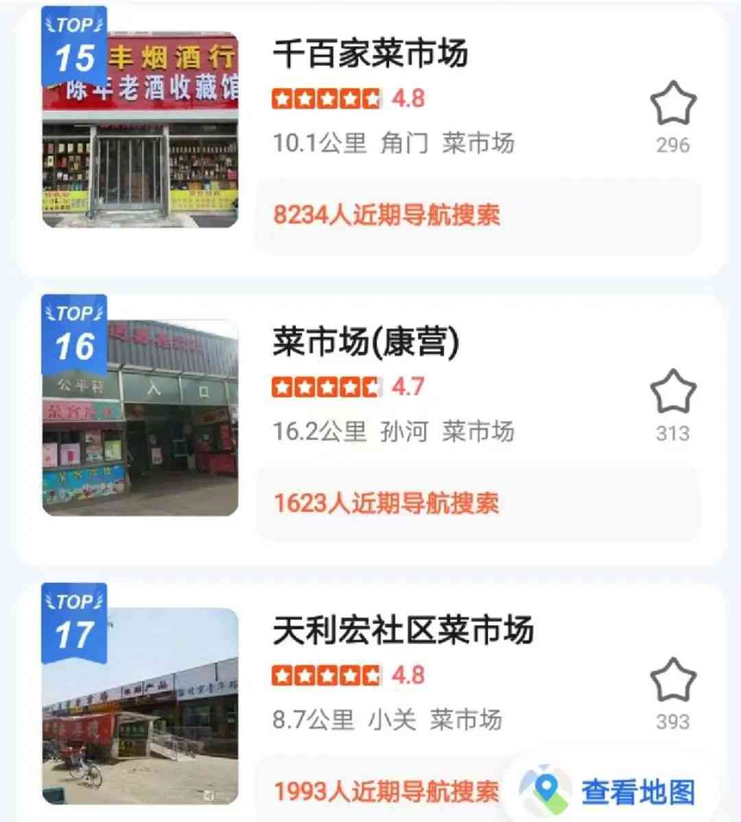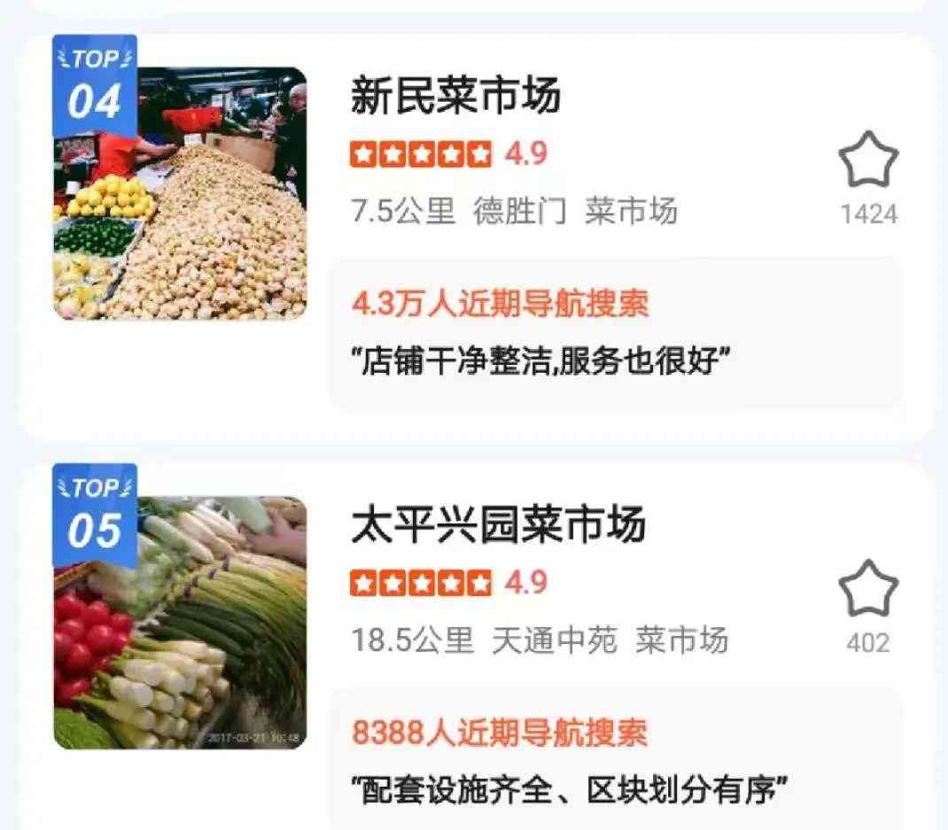 以上菜市场排名为“综合排序”名次。除此之外,还可按照“导航人气”、“好评优先”、“距离优先”排名,选择的标签不同,排名也会发生变化。