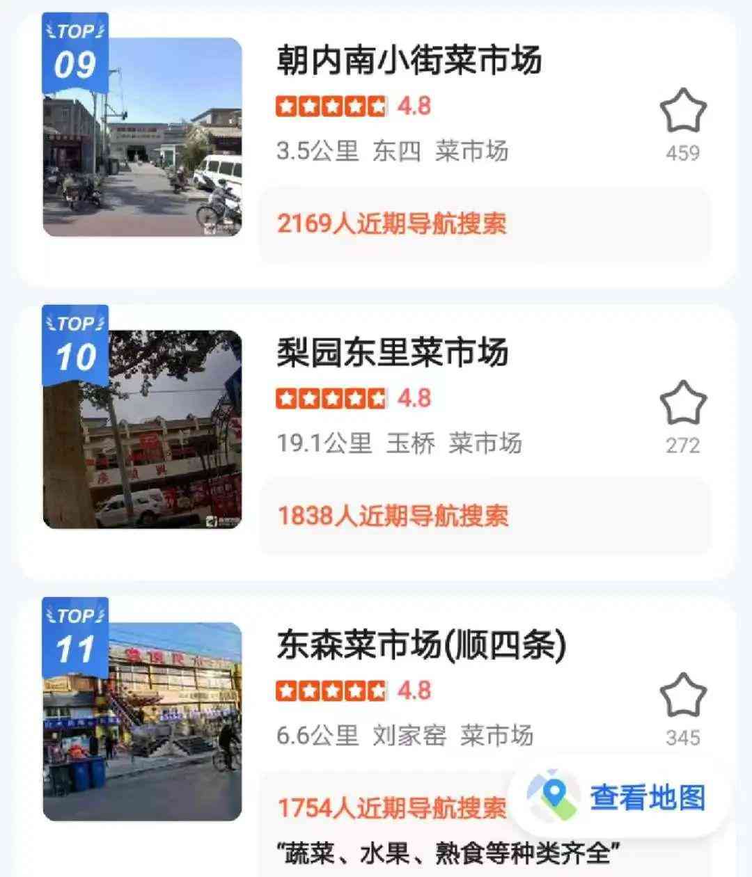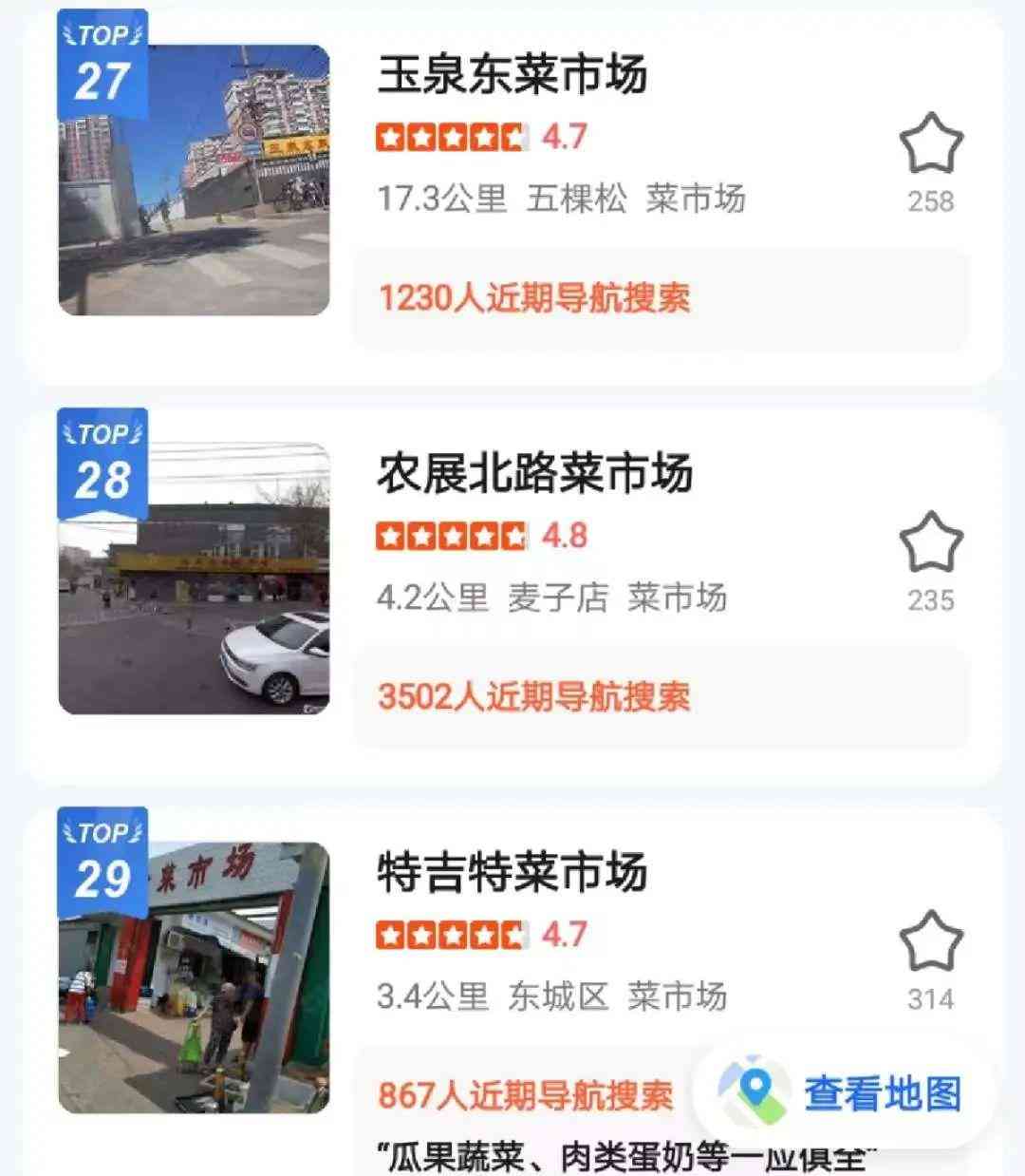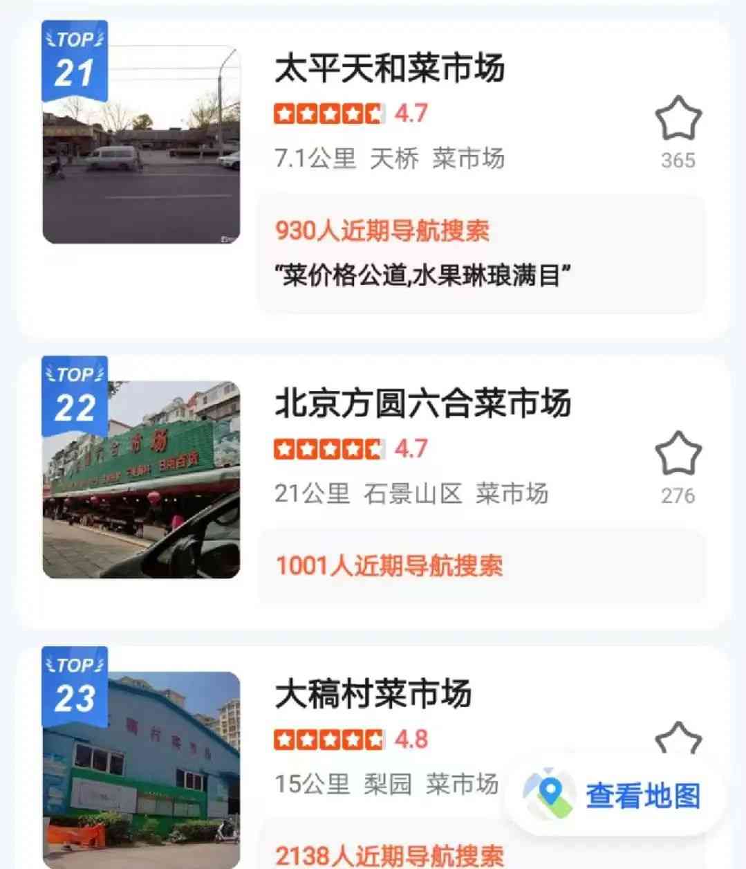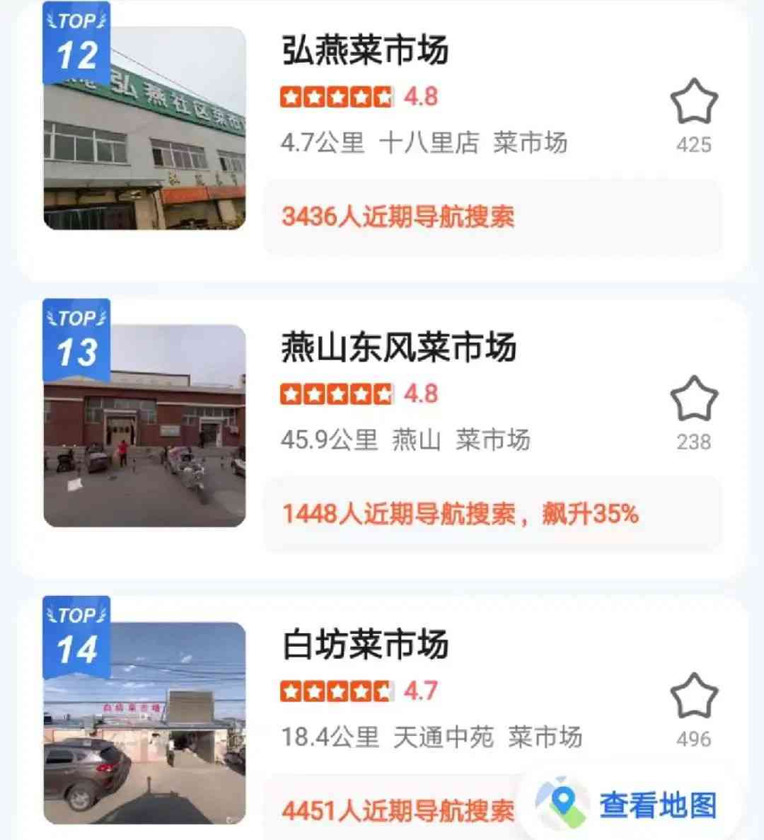 以上菜市场排名为“综合排序”名次。除此之外,还可按照“导航人气”、“好评优先”、“距离优先”排名,选择的标签不同,排名也会发生变化。