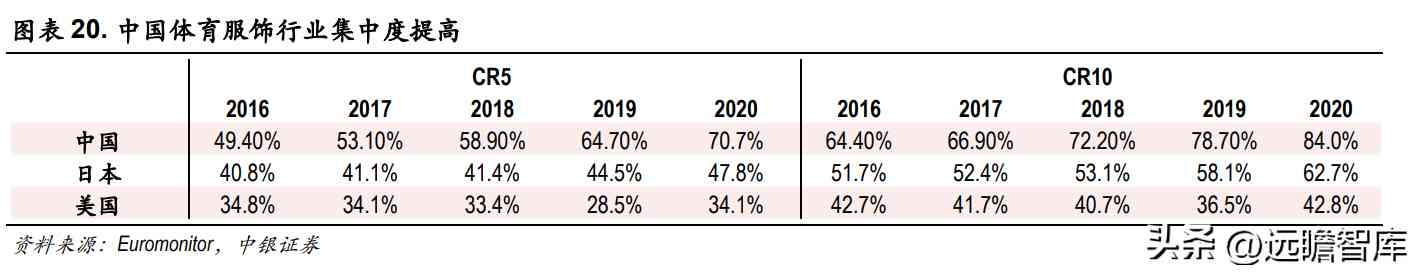 功能性运动服饰更容易形成消费者品牌粘性,行业集中度不断提升。
