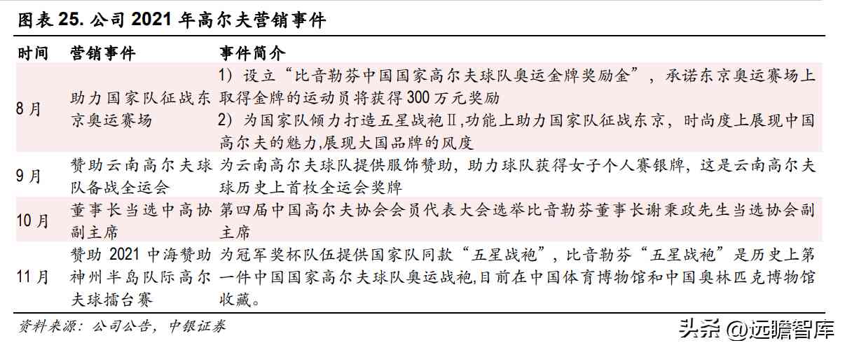 因此,无论在专业高尔夫服饰领域还是高端休闲服饰领域,比音勒芬均具备支撑其高端专业品牌形象的文化底蕴。