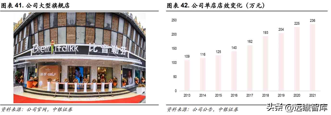 此外,基于同百货商场建立的长期合作关系及品牌自身良好的门店绩效,比音勒芬还获得百货商场在店铺位置、面积及扣点等多方面的支持,并结合其“调位位置、扩面积”的举措有效保证了公司百货门店的竞争优势与店铺效益,进而形成品牌绩效与渠道议价能力互推共进的良性循环。