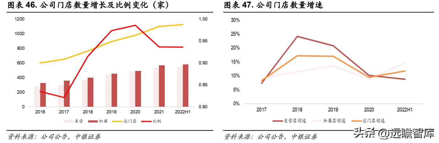 4.1.1“直营+加盟”布局模式合理,规模显著增长比例平稳波动