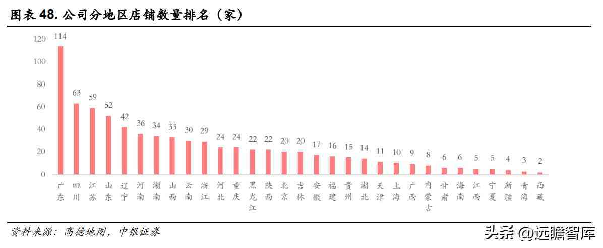 公司起源于广东并深扎广东市场,数据显示公司在广东省建立了 114 家门店,远高于第二大布局区四川省的 63 家。