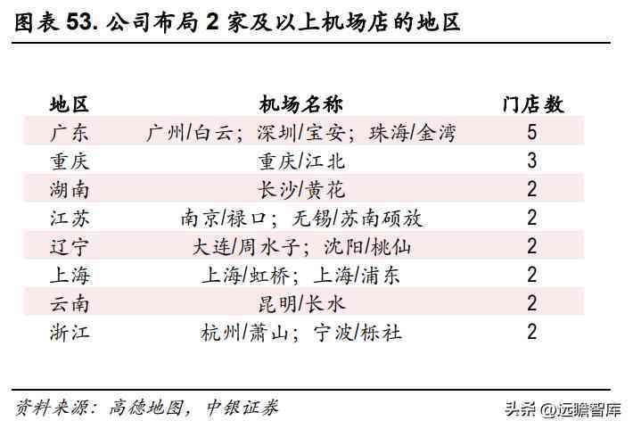 根据中国民用航空局数据,截至 2020 年末我国境内民用运输机场(不含香港、澳门和台湾地区)241 个。高德地图显示公司 32 个机场店分布在 26 个国际机场,渗透率仅为 10.79%,公司在机场渠道方面也存在较大的布局空间。