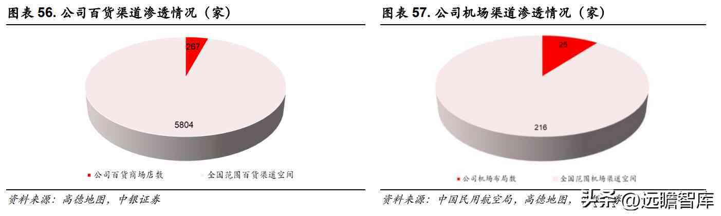 全国范围百货商场店渗透率较低,存在布局空间。根据国家统计局,截至 2020 年末全国共有 6071 家零售百货商场,而公司在百货渠道布局了 267 家门店,渗透率较低仅为 4.40%,因此公司在百货渠道方面仍存在较大的布局空间。