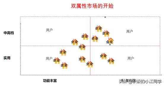 相反,如果“功能丰富程度”是强属性,“档次”是弱属性,那么“双寡头”的市场就是按“功能丰富程度”这个属性进行市场分割。
