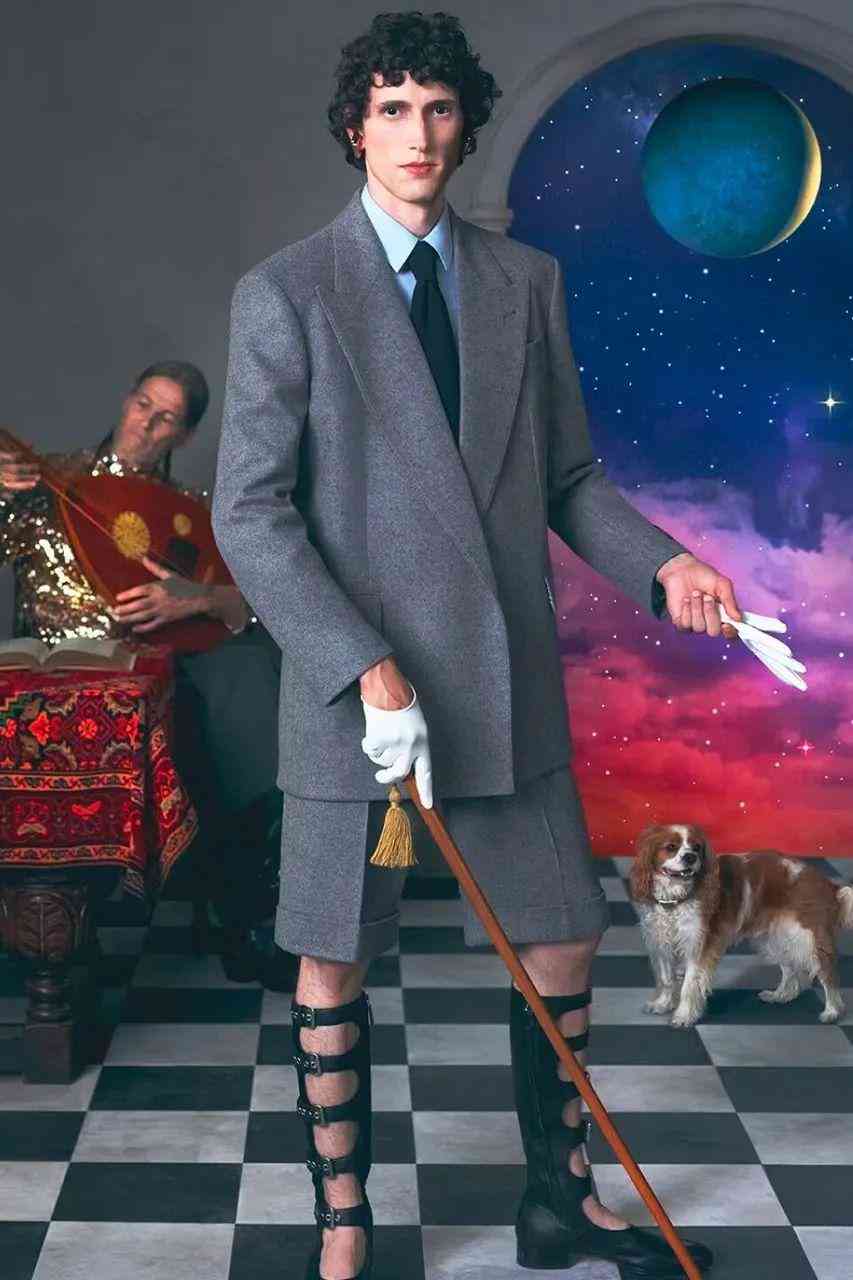 GUCCI日前发布2023早春系列「Cosmogonie」Campaign,这场于蒙特城堡举行的大秀,其八角形塔楼为现场增添一丝神秘色彩,诗人、数学家、天文学家、哲学家等角色走在跑道上,现却被重现于Campaign中。服饰方面,来自十六世纪的荷叶边、维多利亚风格的靴子、40年代的廓形、70年代的光学图案、新款Aphrodite手袋以及更多元素汇聚在一起,却毫无违和感。超现实的背景搭配「不合时宜」的服饰、妆容与发型,非常符合Alessandro Michele时代的GUCCI风格。