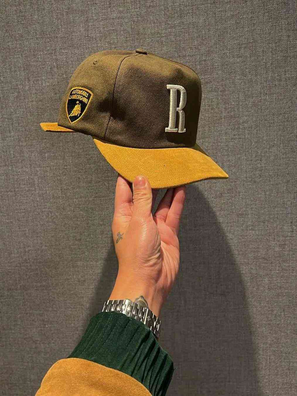 曝光的照片中,包含两件该系列服饰类单品,横纹材质,疑似是夹克或衬衫产品,采用深橄榄绿色,配有RHUDE和Lamborghini的标签与名牌;另一顶同样采用深橄榄绿搭配棕黄色的鸭舌帽看起来也是质感十足,帽身还印有Lamborghini品牌标志「R」字母刺绣表明身份。虽然只是部分曝光,但从仅有的用色设计和工艺质感来看,已经足够令人期待。此外,同步被Rhuigi晒出的还有.款Huracán Sterrato,车头装有特殊凸起装置,暂不清楚是否也与本次RHUDE联名有额外联系。众所周知,Rhuigi个人就是狂热的超跑爱好者,收藏的稀有Lamborghini也让众人艳羡,这次的联名,属实是「热爱」到头了。当然,超跑还是交给实力玩家们关注,我们继续密切关注此次联名系列的服饰类单品正式与我们见面。