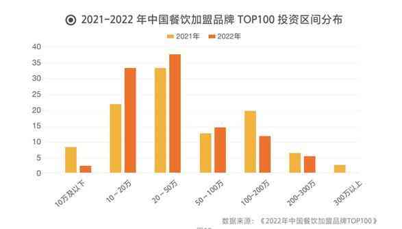 2021-2022年中国餐饮加盟品牌TOP100投资区间分布