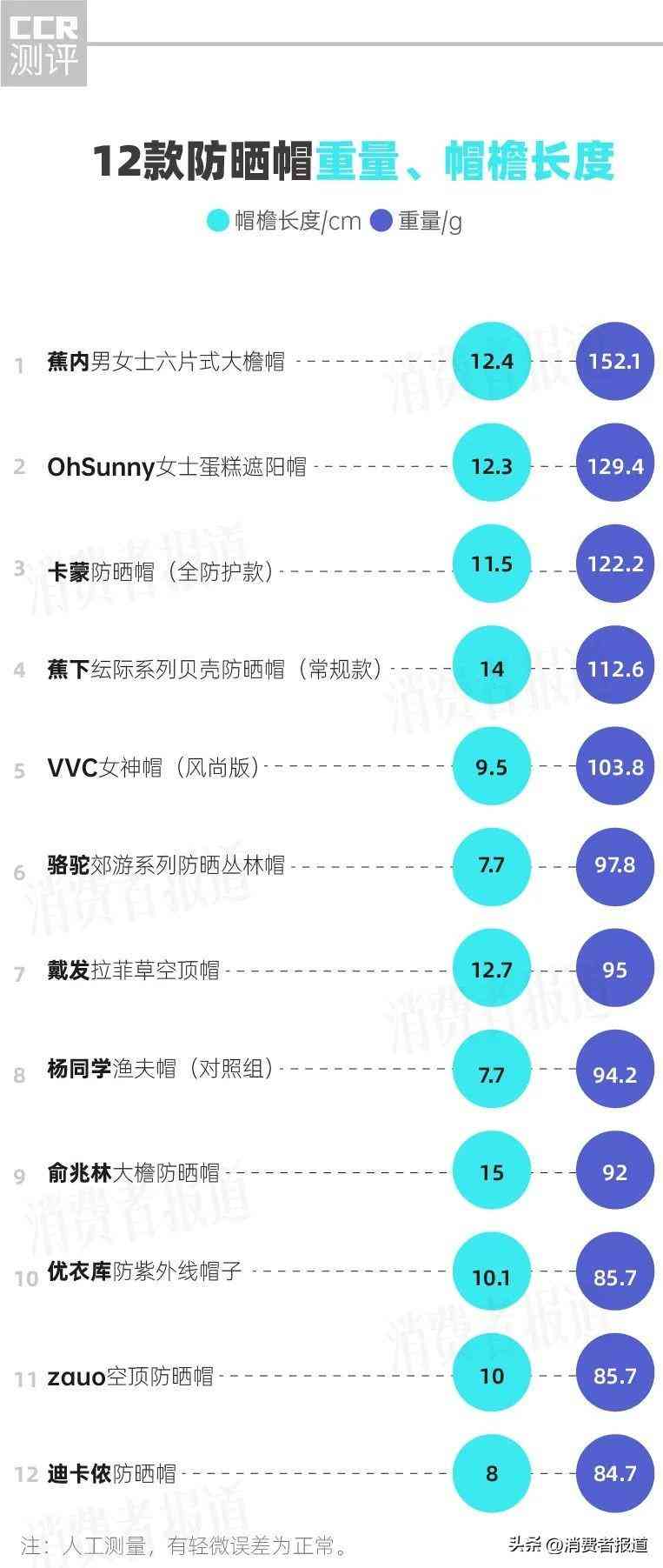 防晒帽最重要的是防晒没错,但也要兼顾好看和实用。2022年7月,《消费者报道》从多个维度对12款防晒帽的实用性进行了测评。