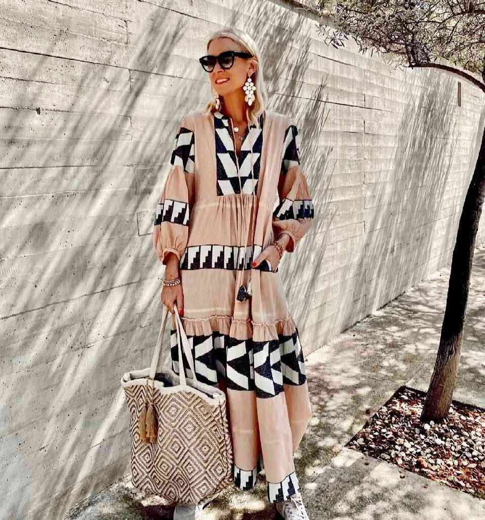 在过去的几年里,所谓的佩三或农民服装风格一直很流行,暗示着柔和的自然色调、“厚”的装饰边、自由的“桨”轮廓等。这一切在 50 年后的女性身上看起来都很棒。