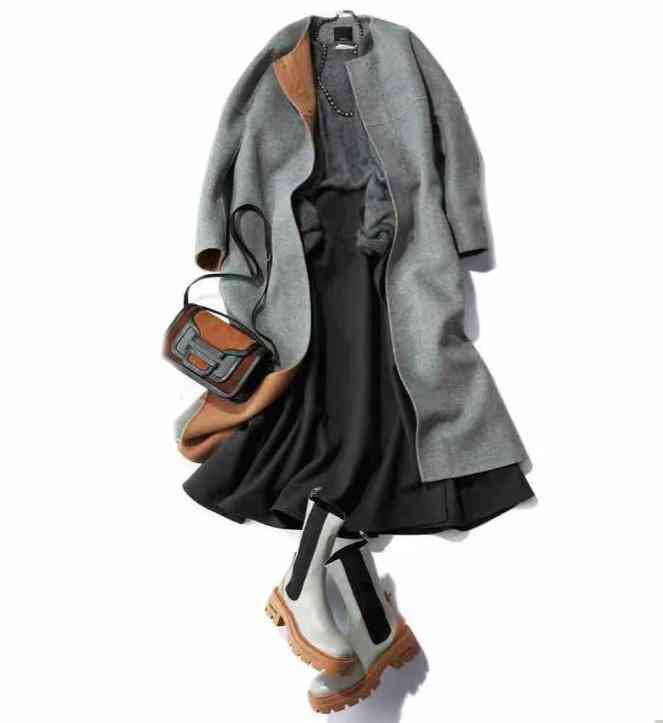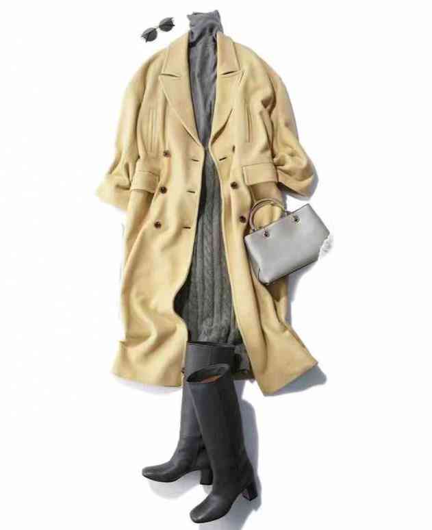 搭配浅灰色精致手拎包,踩一双长筒靴助兴,酷感、优雅、大气、讲究,全都有啊。