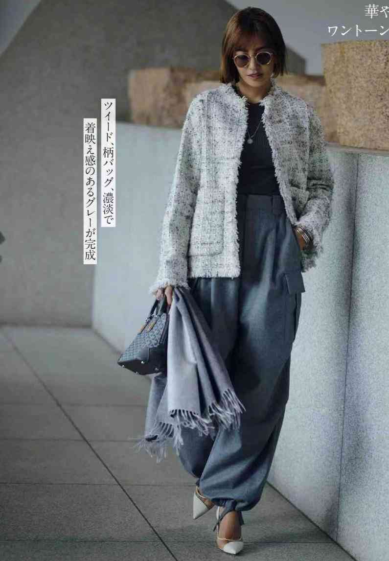 之前洛薇强调过,穿灰色想要好看,必须赋予一定的个性张力。个性从哪来?从风格来,从型、色、质、图案中来,从整体搭配的细节中来…