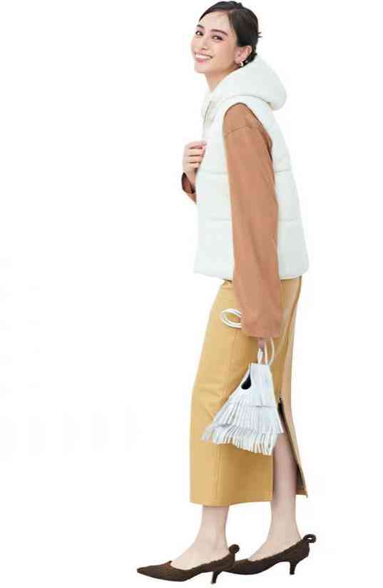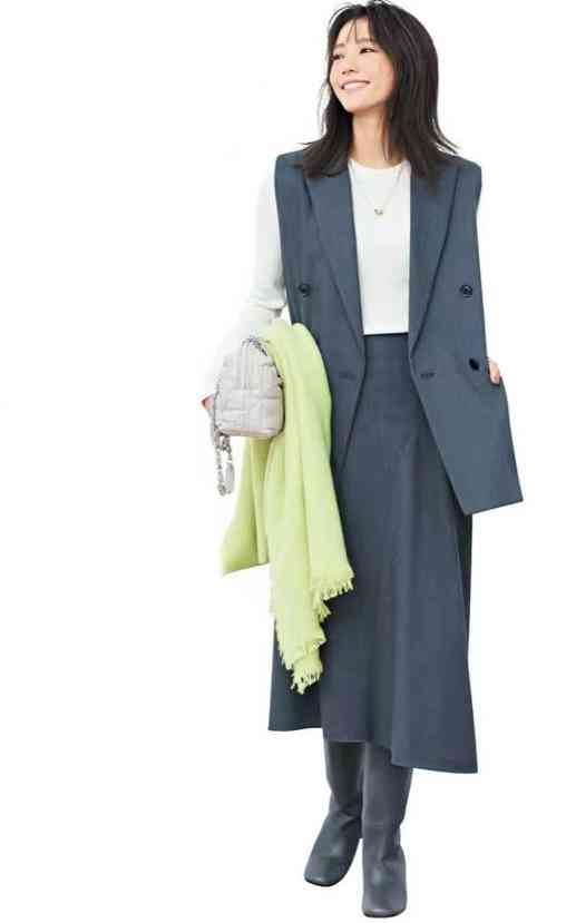 灰色马甲半裙套装,利用女人味为高级灰树立风格标签。内搭白色基本款,吟唱着经典之曲,随和而不平庸,平凡却有调性,最耐人寻味。