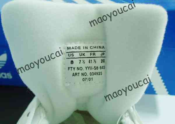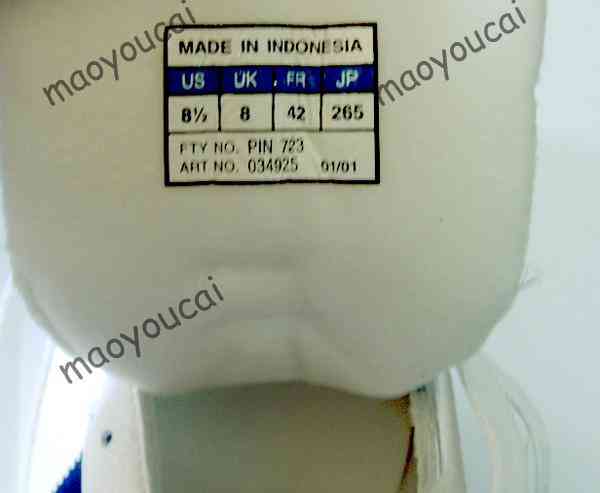 上图鞋标已经非常少见了,因为现在专卖上的新品都是新标了,只有这种原色的贝壳头还有这样的标,01年1月前的标是这样的.现在假鞋也根本没有这样标的了.
