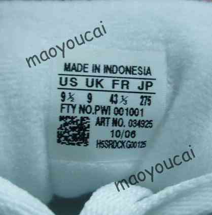 一个鞋标对于一对鞋的真假起到了很大的作用的,另外一对鞋的鞋标的数字的对位是很重要的,为什么对位很重要呢?因为印刷一个鞋标是要用到摸具的,如印一个真正的鞋标要花费几十万,甚至上百万的;假鞋的制造商难道会为一对假鞋的鞋标花费几十万,甚至上百万的吗?当然不会啦!所以一对鞋的鞋标的数字的对位是很重要的.
