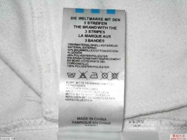 和NIKE的一样,现在大部分功能面料的ADIDAS衣服都是采用胶印的主标,仔细观察主标的平整度和清晰度即可。如果是指定地区的版本,只会在上面标出指定地区的尺寸。如果是多国版本,则会标八国尺寸。