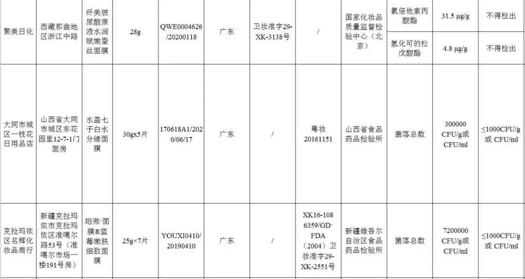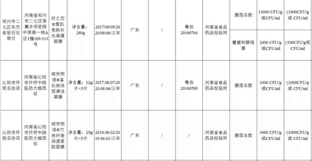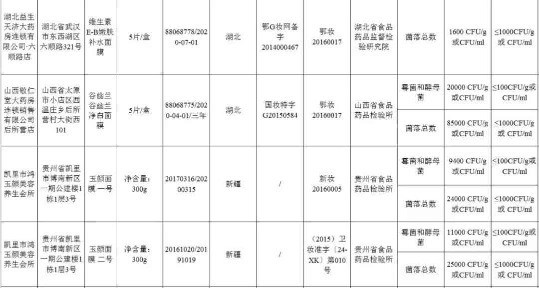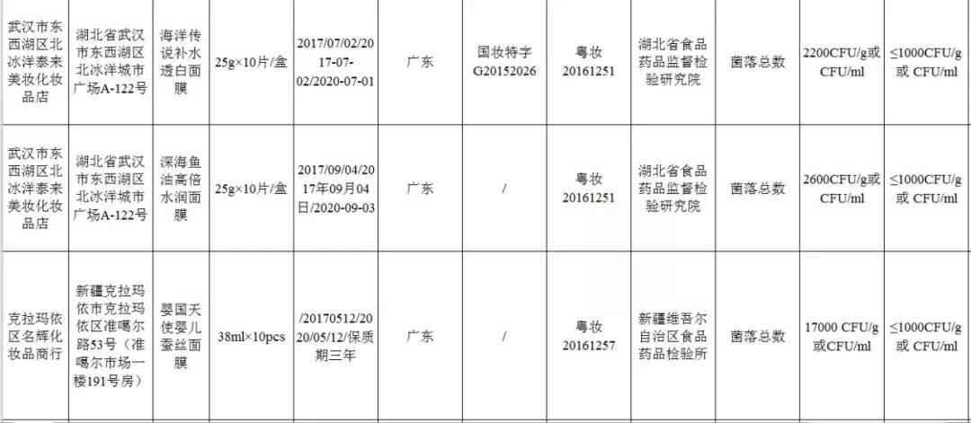 这些不合格面膜!