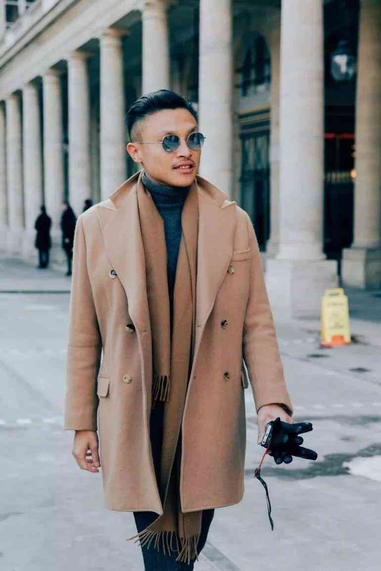 建议中年男人买大衣选纯色,经典的黑色或高级的卡其色、驼色,都能帮助你打造洋气高级的look。