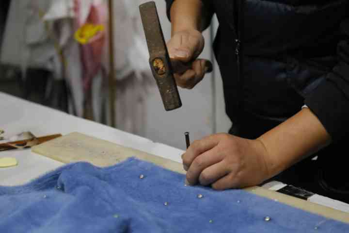今年杭州的冷空气来晚了几天,但是从10月下旬开始,店里的订单就多了起来。“一天能做10件以上,还有另外几位师傅帮忙一起做。”