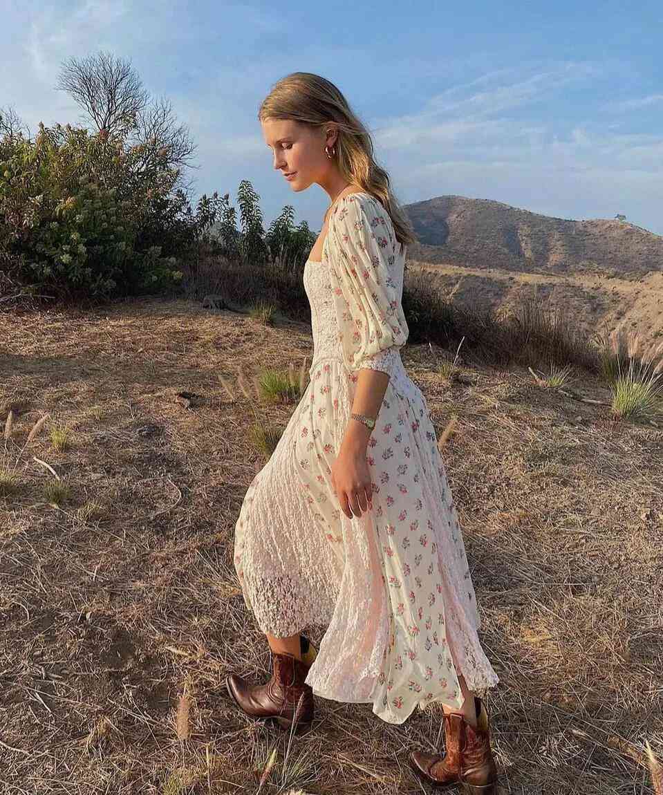 温度适宜的时候,一款雪纺材质的碎花裙,飘逸灵动,时髦又有女人味儿的同时,将复古chic风推向高潮。