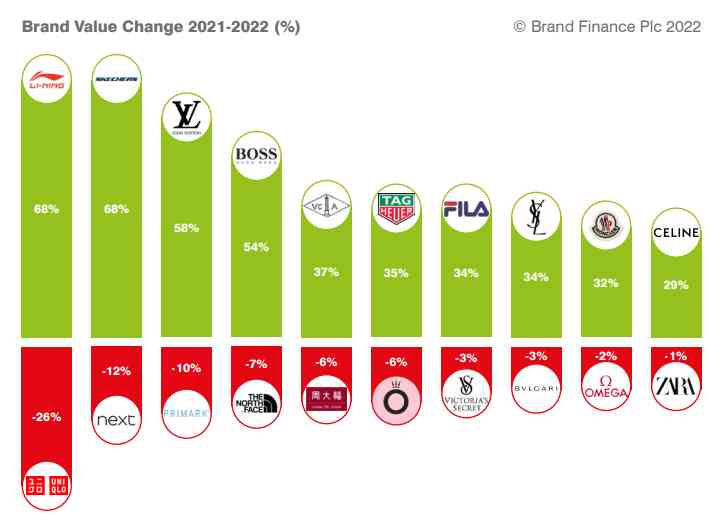 2022年度时尚品牌价值变化