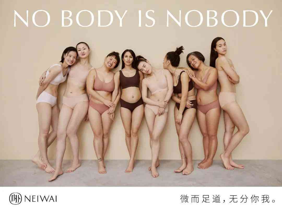 比如,洞察到“身材焦虑”成为女性关注的焦点后,内外在2020年推出了“NO BODY IS NOBODY”的品牌策划。通过6位不同身材的女性的故事,提出“没有一种身材,是微不足道的”的理念,不管是大胸还是小胸、纤瘦还是丰满,都是属于女性的身材独特性。通过这次品牌策划, 内外想鼓励女性正视自己的身体,不要有身材焦虑,这也引起了广泛的探讨和女性共鸣。