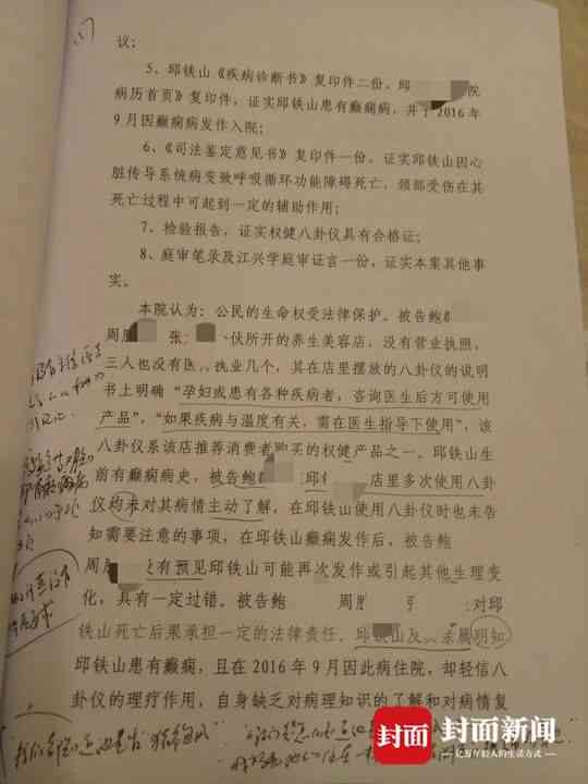 邱铁山因涉及权健八卦仪汗蒸而死亡,民事诉讼案正在二审中尚未宣判。不过,怀化鹤城区人民法院一审判处生产权健八卦仪的权健自然医学科技发展有限公司(以下简称权健公司)不担责。