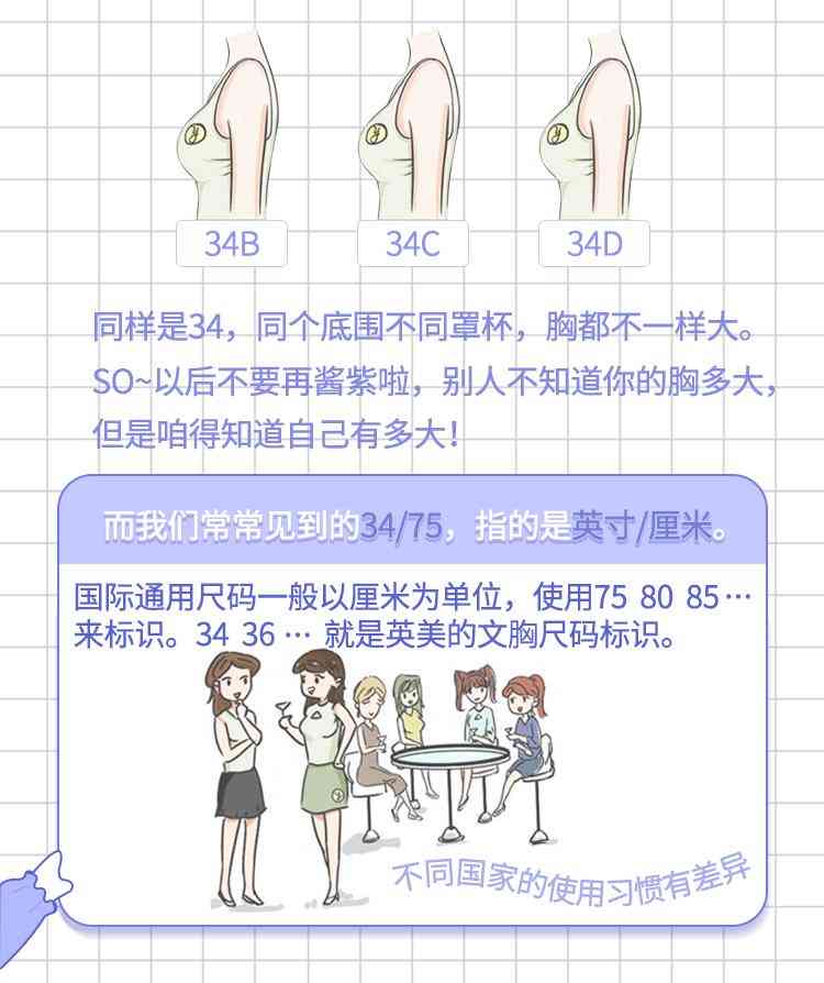 国际通用尺码一般以厘米为单位,使用75 80 85…来标识;而34 36…就是英美的文胸尺码标识