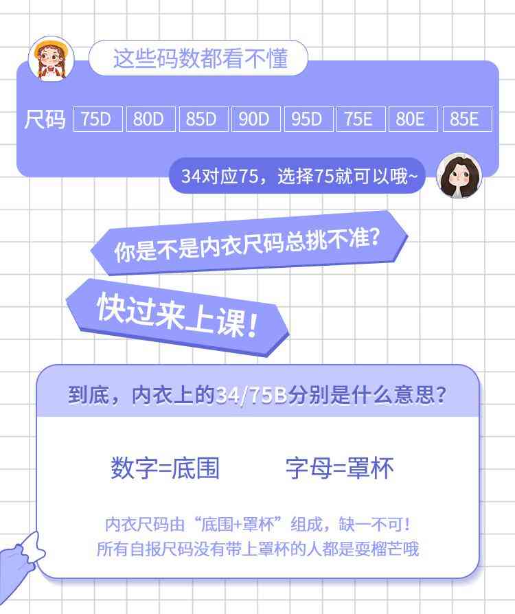 内衣尺码由“底围+罩杯”组成,缺一不可!!!