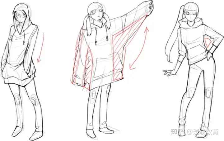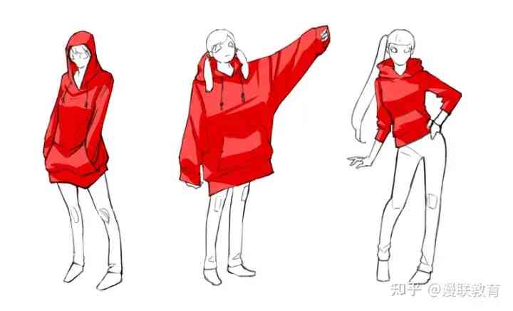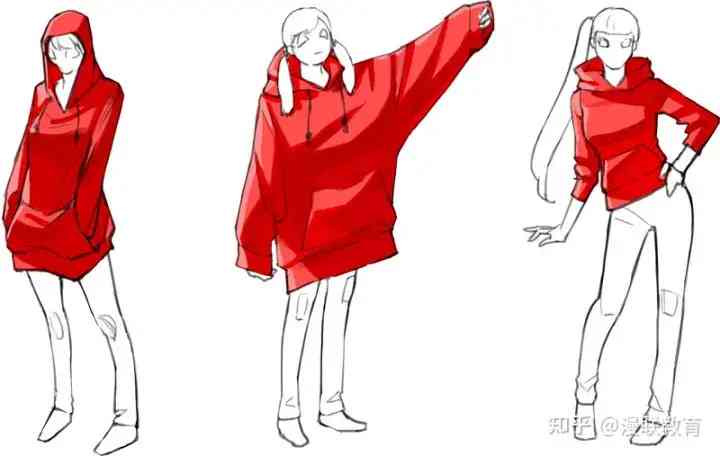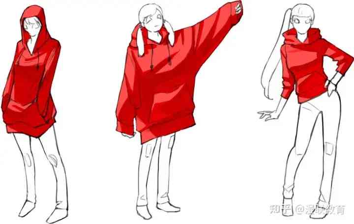 穿着连帽衫作为如何绘制立体衣服的示例。