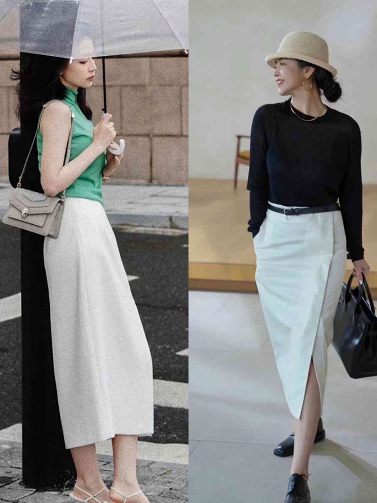 裙装款式数不胜数,选对裙款可以很轻松成为时髦精。这里建议大家选择小白裙,白色裙子在夏季更有优势,而且与彩色、黑色上衣的搭配足够出彩,显得气质干净。