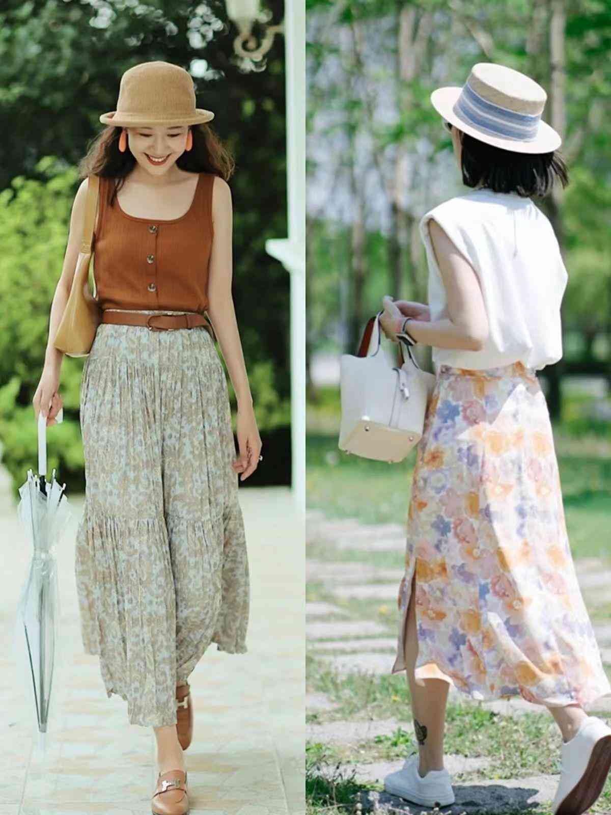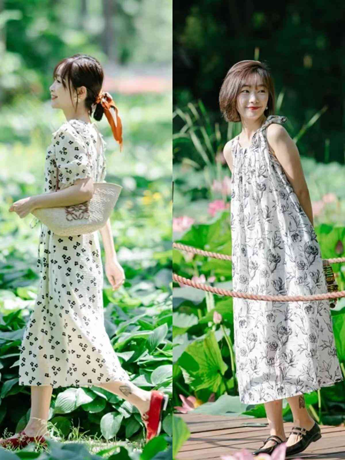 用印花裙凹造型,出街不用担心显沉闷,建议大家选择颜色清浅、花色淡雅别致的印花裙,烘托出清新时尚的氛围感。