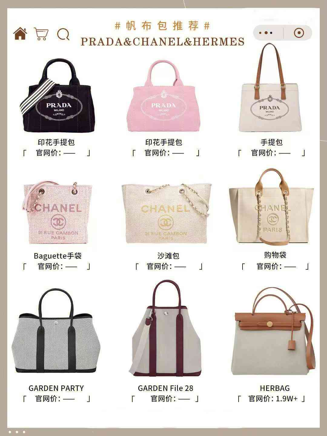 Hermès的herbag和花园包是帆布包界的大家闺秀了~CHANEL的沙滩包算是颜值担当!Prada的帆布托特很厚实耐造!