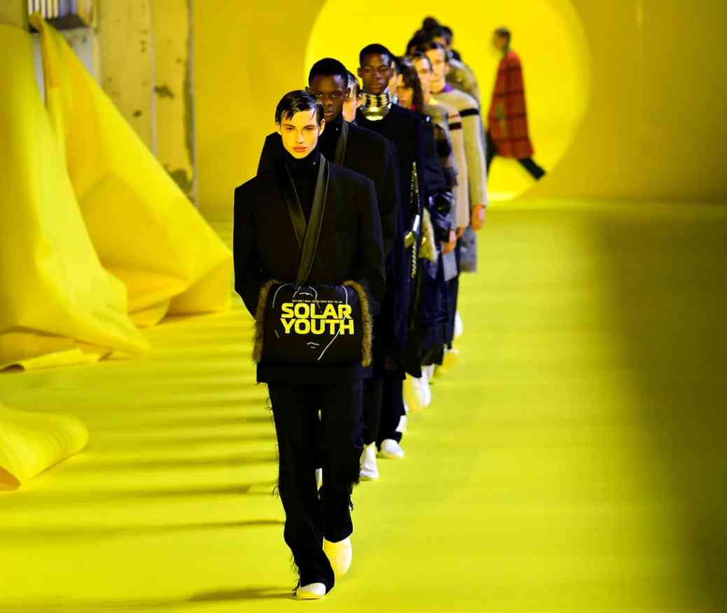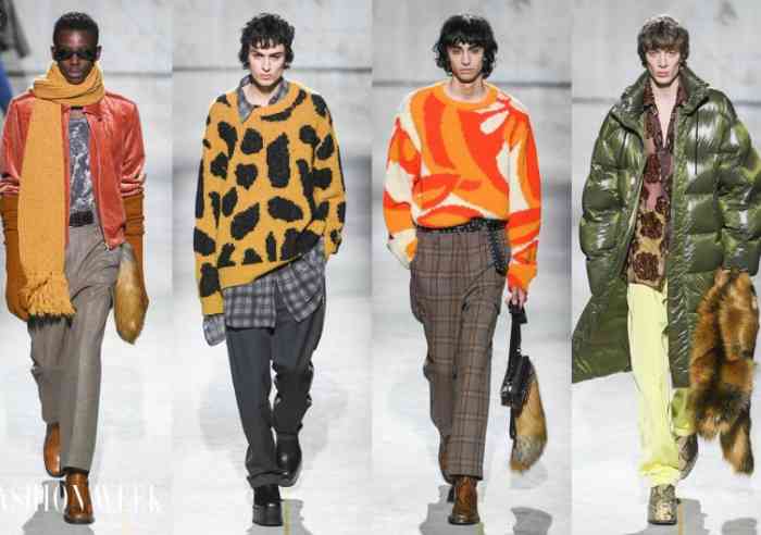 自2013年成为Loewe的创意总监以来,设计师乔纳森·安德森(Jonathan Anderson)一直在负责将奢侈品从意大利和法国的休闲场所扩散到对全球工艺中来。Loewe看重的是手工艺,而不是炫目的品牌。品牌设计师Anderson为新一代的顾客重新打造了一家充满传统元素的品牌,他们把编织篮子、草制手袋、陶瓷和针织品视为奢侈品的一部分。在这个过程中,Anderson把有关性别流动着装话题从时尚潮流抽走,将其怪异而性感的男装带入主流。最近,他的男装灵感来自于伊比沙岛(Ibiza) 70年代的.豪华时装精品店宝拉(Paula’s)的时髦风格。秋季系列是泛性者的梦幻衣橱,就像从豪门贵妇的满满的蒸汽船行李箱里拿出来的东西: 橄榄球服、围裙礼服、长袍和皮带,这些东西是如此亲切,仿佛在招手,让你加入一起玩。