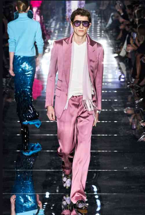 绒面革夹克、黑色紧身牛仔裤、尖锐的运动夹克和丝绸衬衫(敞到肚脐)都回归该品牌,同时也把传统这些服装引到了一个新的方向。