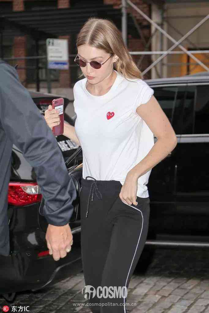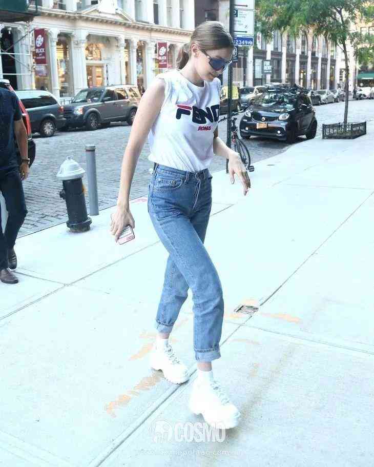 其实明星们也都喜欢把T恤改造成更适合自己的款式,比如最近Lady Gaga、Gigi Hadid出街T恤的袖子都是挽起来的,给人一种随性的感觉。