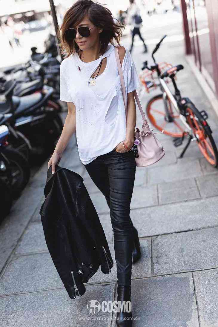 极简款T恤如何穿出万种风情?现在不少大牌T恤都会有挖洞设计,或是星星点点的不规则破洞,或是有意无意的慵懒露肩,其实这些设计也都是自己可以DIY出来的。
