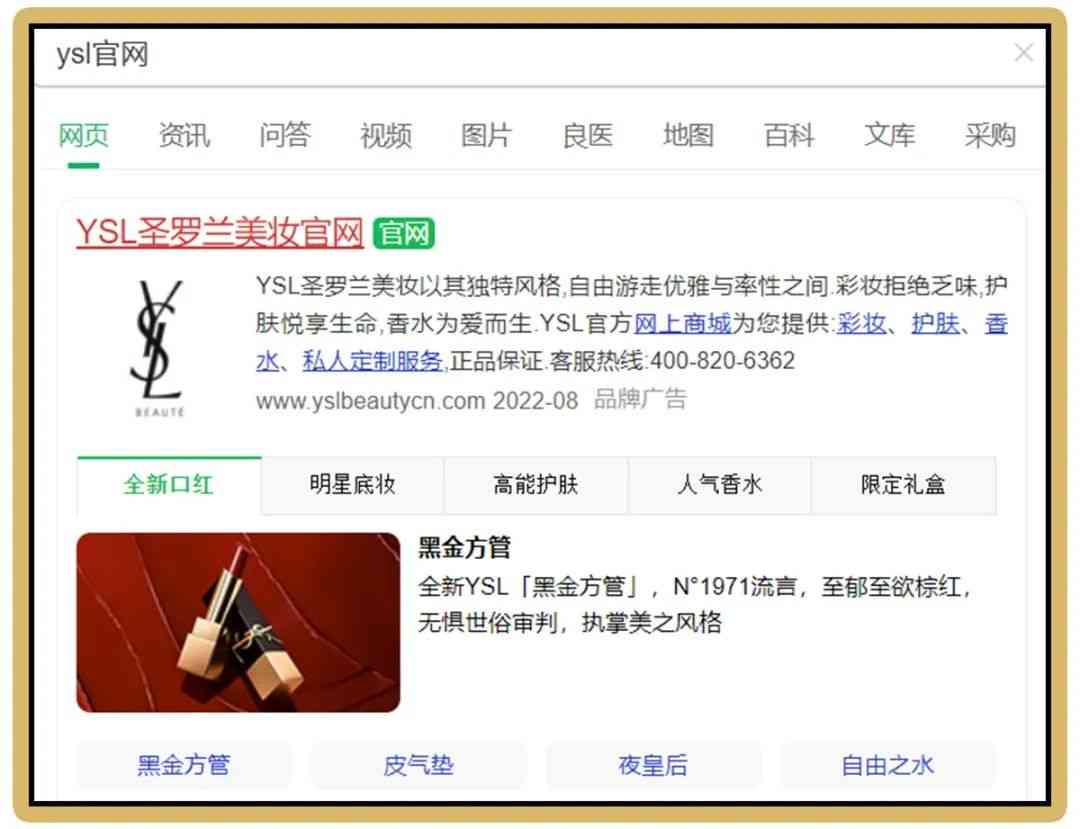 这里所说的官方旗舰店是指的是官方授权.的网站!比如你想买个ysl的产品,在百度上搜索ysl品牌名称,官网一般.条就会自动弹出来。