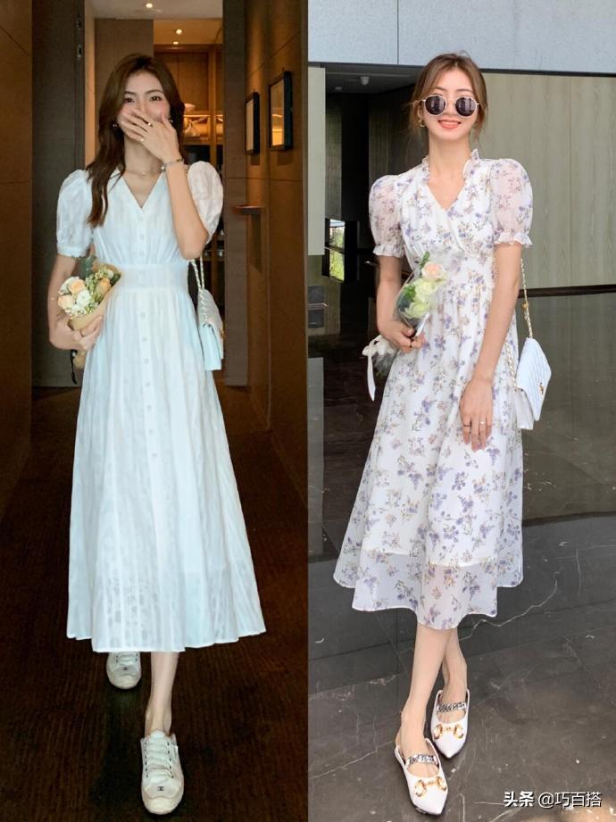 乖巧文静的女孩子,可以选择粉花配白裙,稀稀疏疏的印花与若有似无的花色,雅静又含蓄,日常穿出门,轻易不会撞衫。