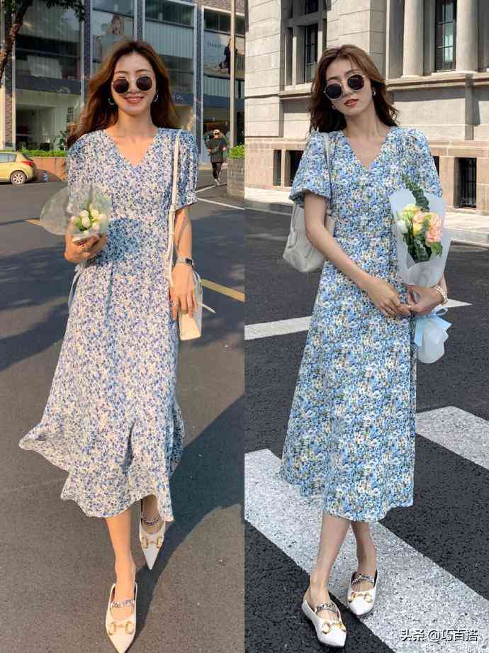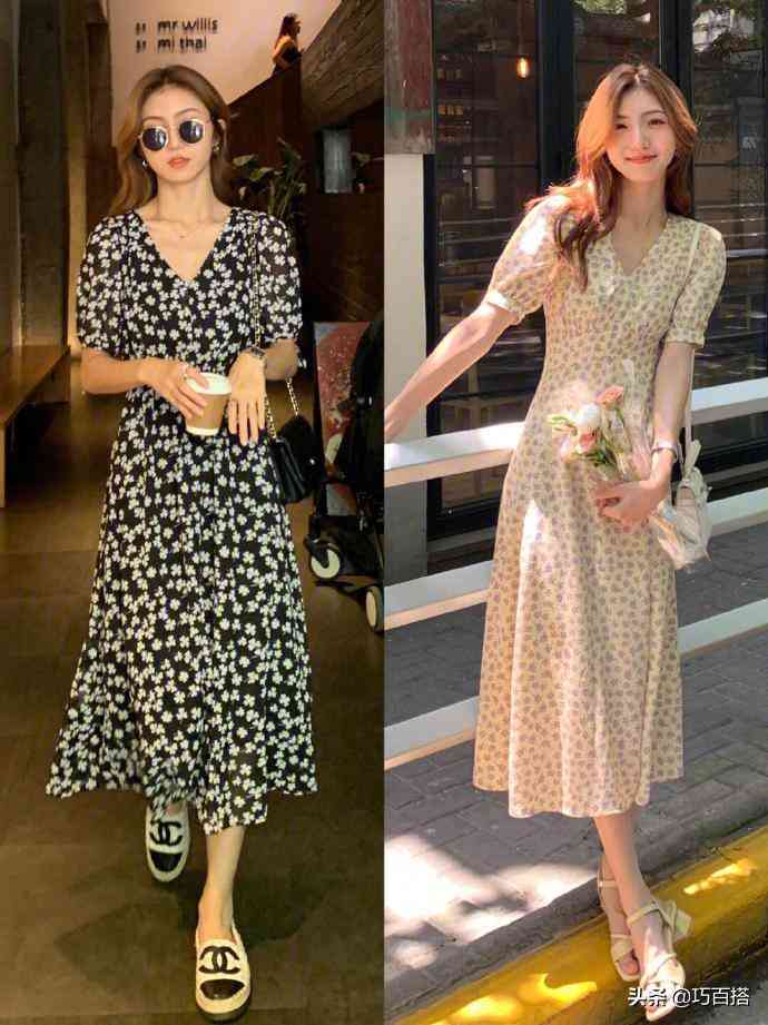 最后是我们的碎花连衣裙,这类长裙的适用场合非常广泛,想去海边,可选择清新配色+稀疏碎花+宽松裙摆式的碎花裙,想去商场,可选择深色系、小碎花式的碎花裙,面料越有质感,上身效果越精致。