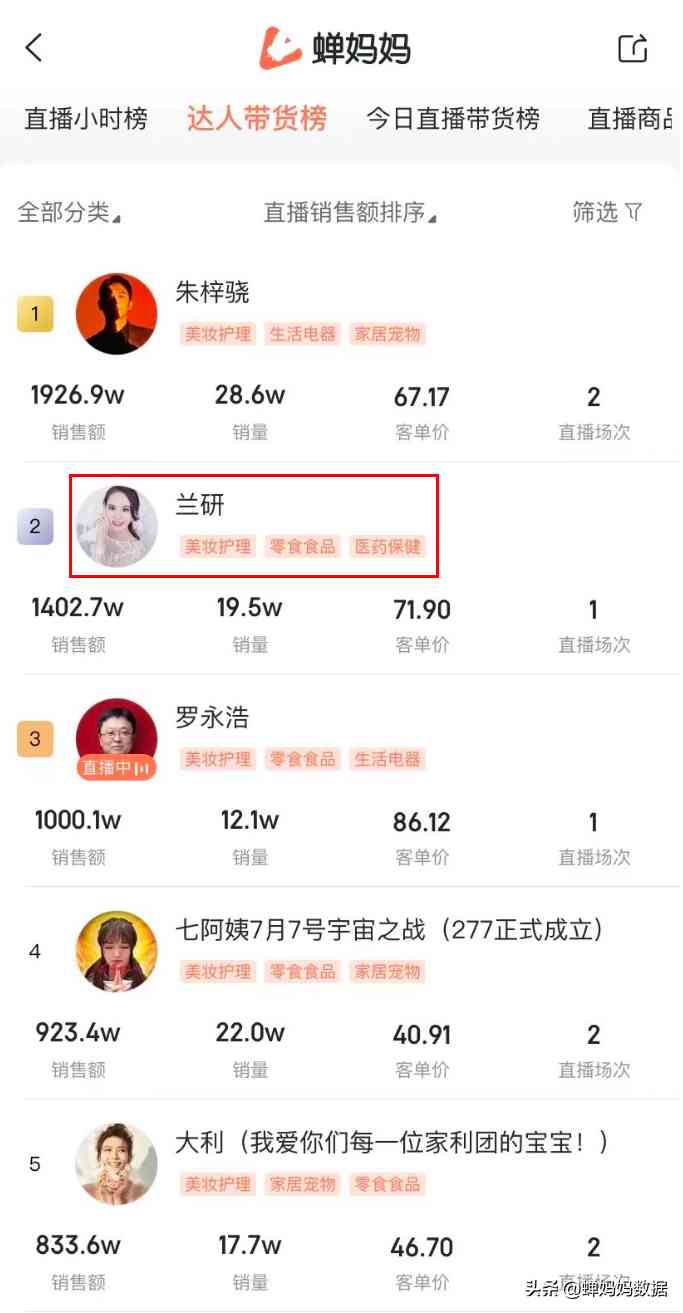 蝉妈妈直播分析