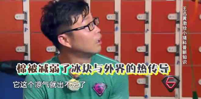 极限挑战一期节目,男人帮集体搬运冰块。“老狐狸”黄磊用棉被包住冰块保冷让小猪很不解,冰块放在棉被里会升温变热,不是会导致融化的速度变得更快吗?