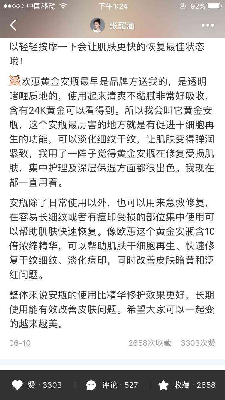 前段时间张韶涵还在小红书安利过她家的黄金安瓶