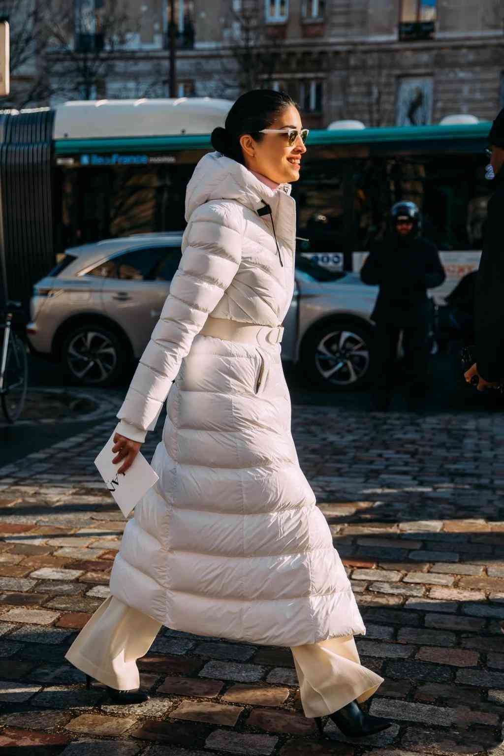 二、长羽绒服不要配阔腿裤,这样搭更时髦