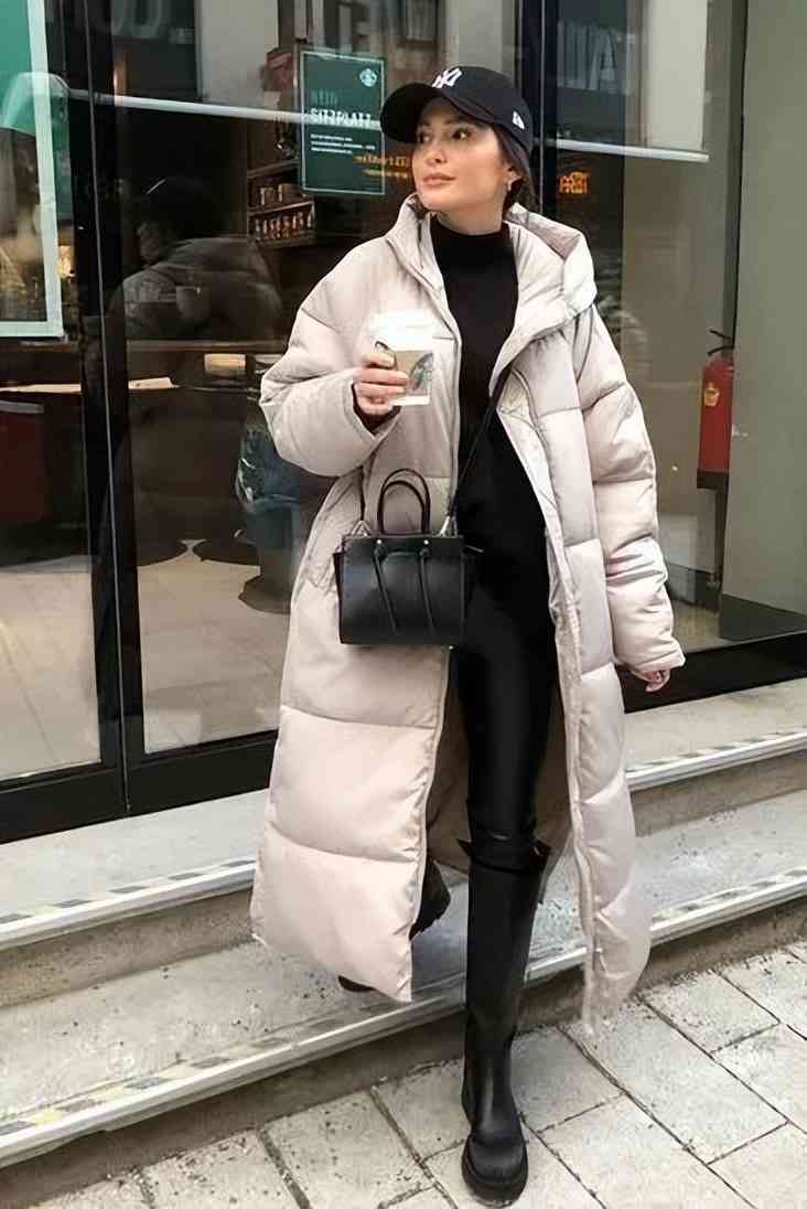 穿长羽绒服最推荐的裤子类型就是紧身、修身的,它和大量感的长羽绒服形成鲜明的对比,反而衬托得身材纤瘦,“松紧结合”也是最常见的穿衣套路之一。