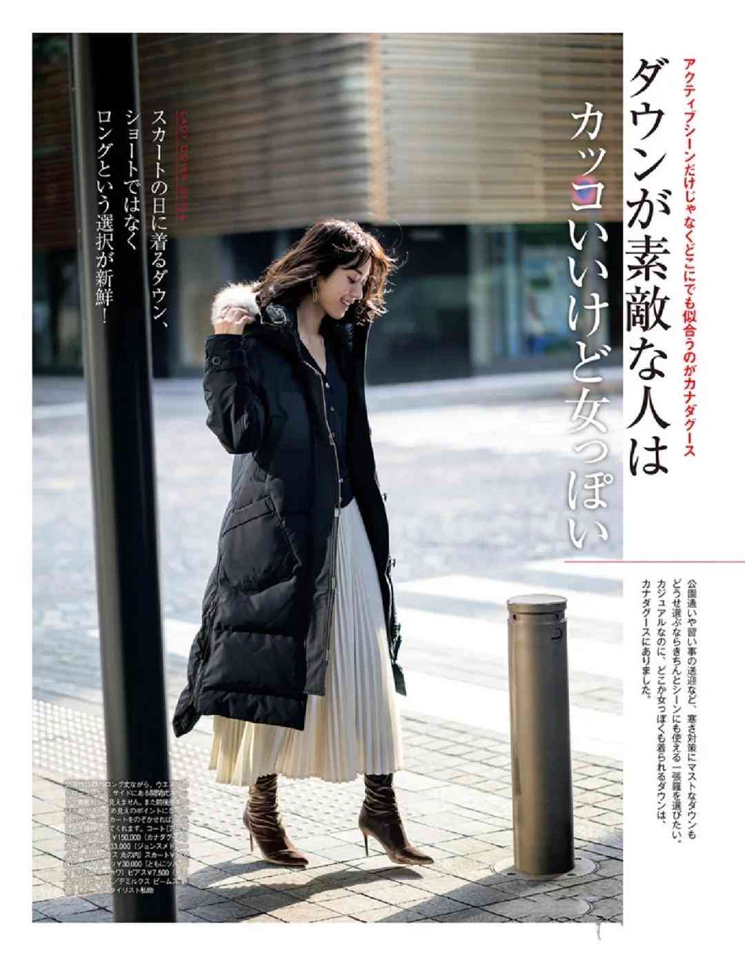 在日杂的穿搭中,我经常可以看到“长羽绒服+A字半身裙”这样的组合,之前总是以为太繁琐了没想到近几年却悄然火了。黑色的收腰羽绒服、白色百褶半身长裙组合cp,最后以棕色细高跟短靴结尾,透着成熟女性的温柔知性。