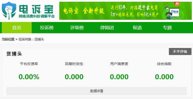 根据“电诉宝”受理的产业电商领域用户有效投诉显示(依据投诉量排行),货捕头排名第2位。.评级为“不予评级”。其他被投诉的类似平台还有:1688、批批网、中国网库、互站网、进货通。